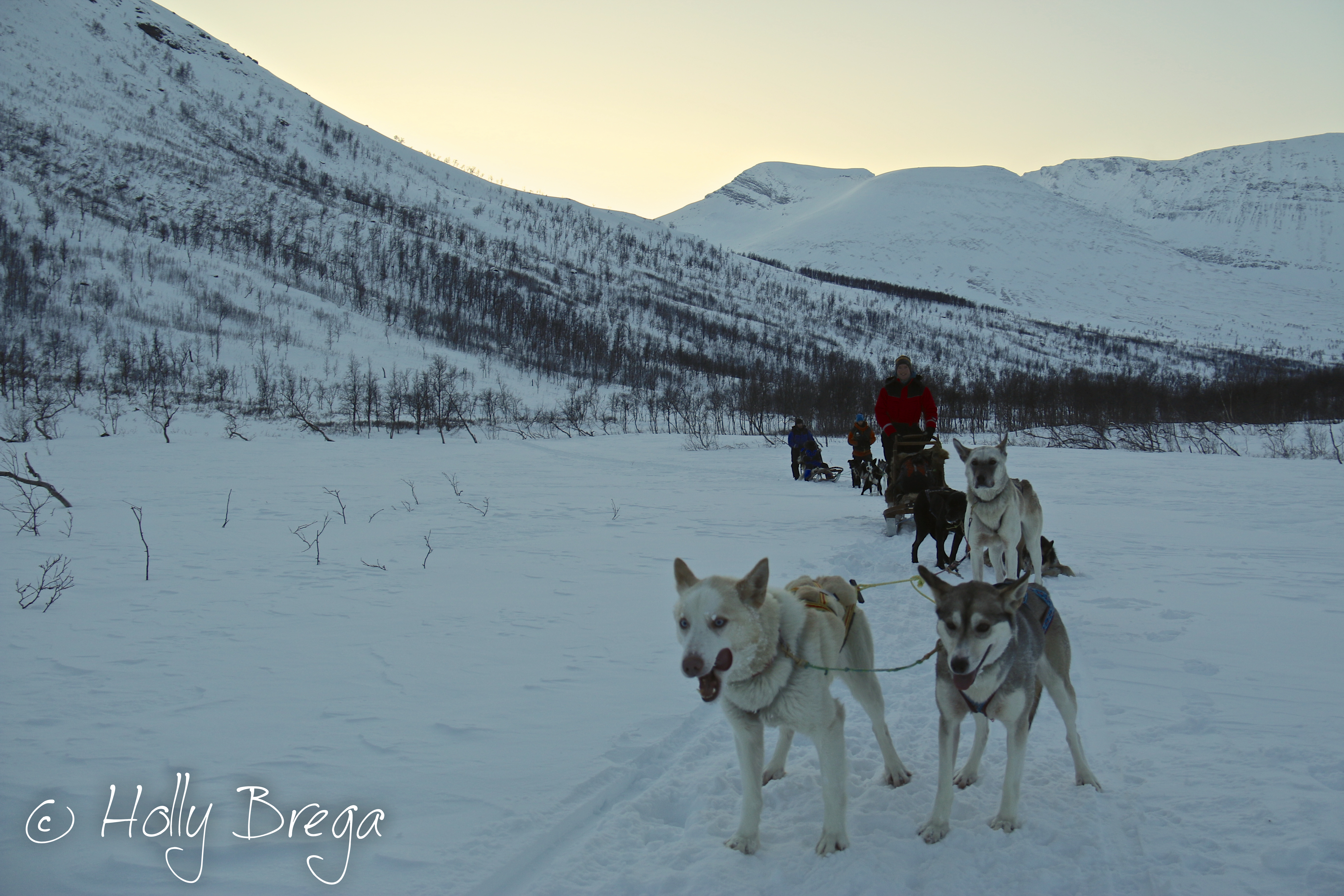 The dogs’ high protein, high fat diet is important as they start training around 8 months to maintain fitness up to the age of 13. The silence is broken as soon as they can sense they are about to get harnessed up.