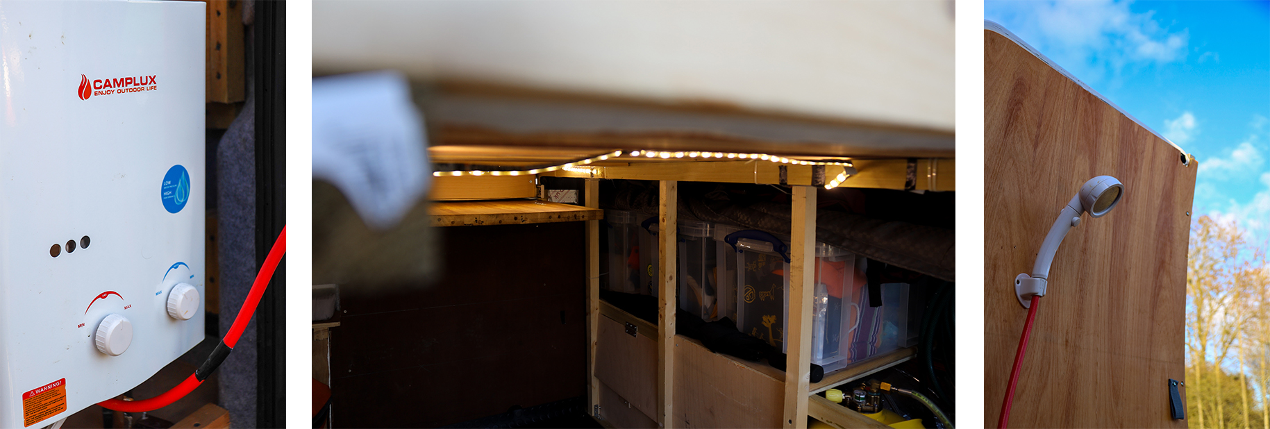 We had extra LED light from the kitchen and it has gone into the garage which is probably the most useful lighting in the whole van!