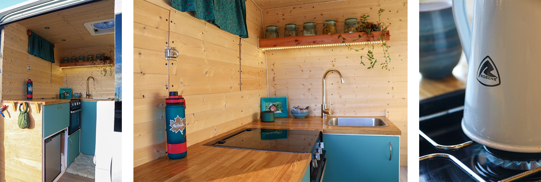Creating an L-shape kitchen has made the most out of our living space. There isn’t a single dead space in the van, everything has it’s place. We did end up with some random holes, but they have proved useful.